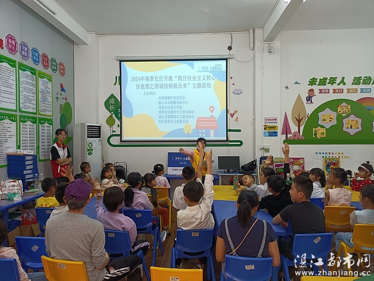 诚信是人与人相处的根本,诚信是国与国友好往来的基石,诚信也是时代进步社会发展的动力。2024年3月23日上午,共青团湛江市委员会、湛江市志愿服务联合会、瑞景社区新时代文明实践站、瑞景社区家长学校、湛江市情暖湛江志愿者协会、N784瑞景社区儿童服务站携手开展“践行社会主义核心价值观之用诚信铸就未来”主题活动。本次活动参与人数58人。