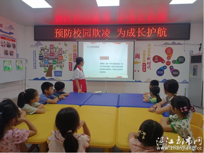 校园欺凌不仅影响学生的身心健康和成长历程,同时也容易造成青少年儿童犯罪,为了建设平安校园,保护青少年儿童健康成长和促进社会安定和谐,2024年4月6日下午由城北街道中山社区新时代文明实践站,中山社区关心下一代工作委员会,廉江市中山社区家长学校,廉江市中山社区未成年人教育示范点,湛江市情暖湛江志愿者协会,壹基金儿童服务站(廉江市中山社区站)开展“预防校园欺凌 为成长护航”主题活动。孩子、家长和志愿者20人参与本次活动。