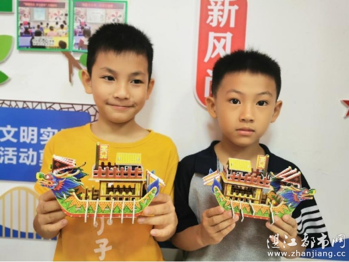 课堂学习之后,到了龙舟船手工制作环节,孩子们不约而同地拿到材料开始拼凑起来,从中看到了孩子和家长们的认真和细心,一起合力完成手工制作,最后一个个乘风破浪的龙船不断地展现在志愿者老师眼前,老师看到了孩子们的喜悦、满意和自信。