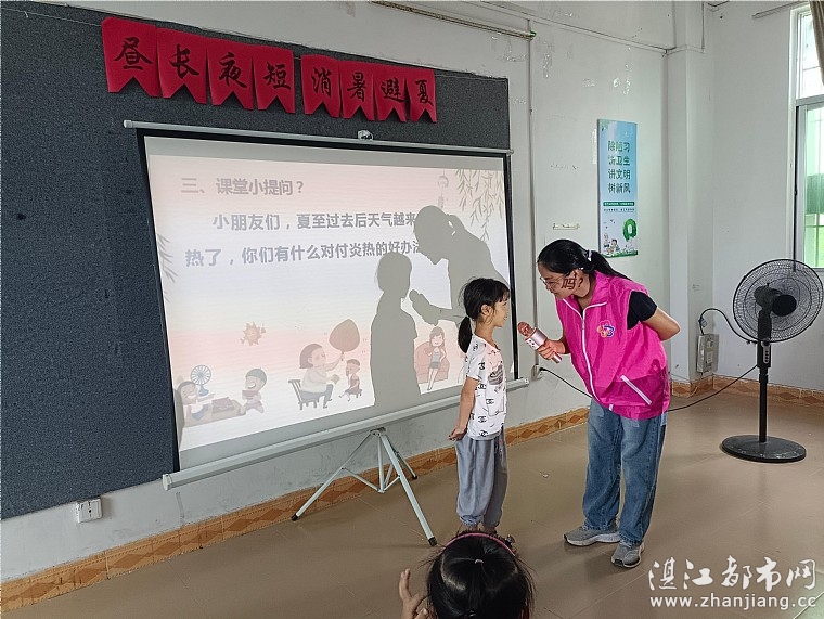 活动伊始,志愿者老师通过PPT课件、视频等形式,向孩子们科普了夏至的由来、气候特点、饮食养生等内容,让孩子们懂得更多夏至相关知识。接着通过课堂提问,请孩子们说一说夏至消暑方式,孩子们争先恐后地举手,有的说风扇。有的说空调,志愿者老师在肯定孩子们的消暑方式的同时,也告诫孩子们不能因为贪凉而过多地食用凉水、冰镇西瓜等,以免引起肠胃不适,也提醒孩子们正确使用空调的方式,孩子们表示获益良多。最后,在志愿者老师的指导下,孩子们进行手工贴画制作,把心目中的夏至通过贴画的形式表示出来。