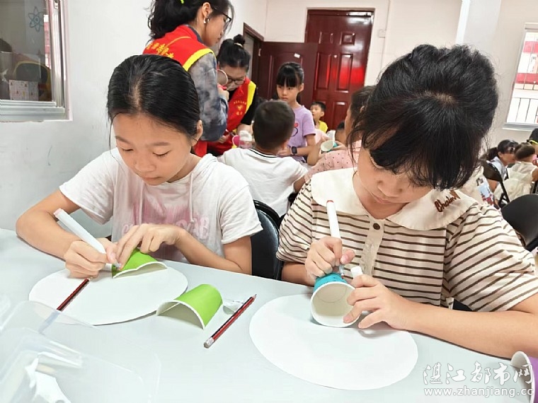 在炎炎夏日里,孩子们最喜欢就是冰淇淋和冻饮,本次活动内容是运用纸杯和卡纸创作属于自己的“饮品”手工作品。活动中,情暖湛江志愿者积极引导孩子们发挥想象力,设计和剪裁纸杯,并指导孩子们绘画、描色、剪裁,用自己灵巧的小手给杯子装饰上一个个有趣的“夏日饮品”。