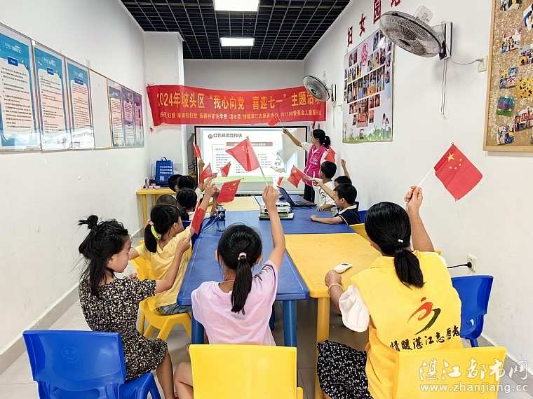 为增强儿童的爱国爱党意识,7月1日,由坡头区妇联、南调街妇联主办,南调村家长学校、湛江市情暖湛江志愿者协会、N1108壹基金儿童服务站(恒大绿洲)承办我心向党 喜迎七一主题活动在恒大绿洲顺利开展,此次活动共有30名儿童参加。
