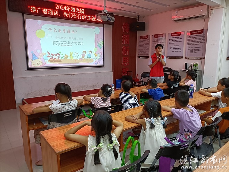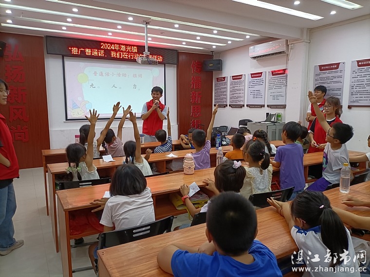 为了推动普通话在孩子们中的使用,提高他们的口语表达能力,2024713日下午由共青团湛江市委员会、麻章区志愿服务总队、湖光镇团委、湖光镇创文办、湖光镇新时代文明实践所、湖光镇妇联、湖光镇综合文化站、广州现代信息工程职业技术学院“夏日萤火”社会实践队、湛江市情暖湛江志愿者协会、N516壹基金儿童服务站(湖光镇文化站)开展2024年湖光镇“推广普通话,我们在行动”主题活动。有志愿者、儿童共40人参加此次活动。