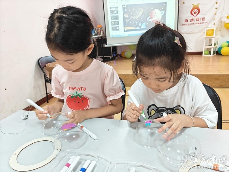 活动开始,情暖湛江志愿者向孩子们介绍了星球的制作步骤,接着让孩子们发挥自己的想象力,用不同的色彩装饰属于自己独一无二的星球。通过孩子们的视角描绘世界的缤纷多彩,在培养孩子动手能力的同时,也让孩子们学习到关于宇宙的基本知识,在动手实践中提升创造力和审美能力。