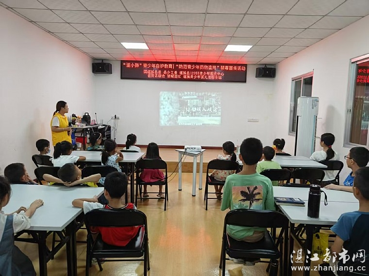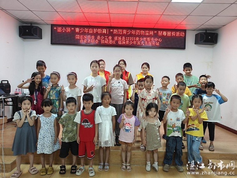 为进一步加强青少年毒品预防教育工作,增强广大青少年禁毒意识及自觉抵制毒品侵袭的能力,8月4日下午,共青团遂溪县委员会、遂溪县少工委、遂溪县12355青少年服务中心、遂溪县青年志愿服务联合会、湛江市情暖湛江志愿者协会、NO.1111壹基金儿童服务站在遂溪县青少年活动中心联合开展“遂小狮”青少年自护教育|“防范青少年药物滥用”禁毒宣传活动。