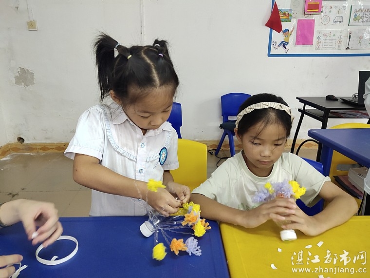 活动伊始,工作人员通过PPT课件等形式,给孩子们科普了垃圾分类知识,随后通过图片的形式,使孩子们更直观地理解垃圾分类的正确方法及重要性,让大家深刻认识到“保护环境,人人有责”,随后,请孩子们说一说身边可回收资源有哪些,怎么才能更好地进行二次利用。最后,工作人员拿出矿泉水瓶以及不同颜色的水果网,让大家利用废弃材料,发挥创意,将丢弃的物品变废为宝,进行环保创作。在工作人员的指导下,孩子们纷纷动手制作起了创意十足的环保花束。通过亲身体验旧物利用的过程,孩子们进一步巩固了所学知识。