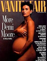 怀孕期间的演员戴米·摩尔以全裸形象出现在了《名利场》杂志1991年8月份的封面上,当是引起了不小争议,一年之后戴米·摩尔再次出现在杂志的封面上,这次她穿上了衣服。<br>