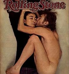 1981年1月22日的《滚石》杂志封面上是列侬赤身裸体,像婴儿一般蜷缩在大野洋子身边,吻着她的脸颊。<br>