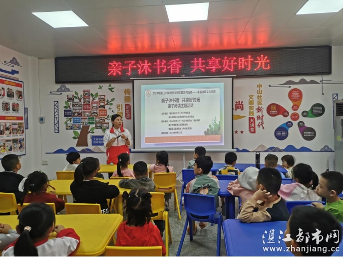 为了培养孩子们的阅读习惯,提高阅读兴趣和增进亲子关系,2024年11月23日上午由城北街道关心下一代工作委员会,城北街道中山社区新时代文明实践站,中山社区关心下一代工作委员会,廉江市中山社区家长学校,湛江市情暖湛江志愿者协会,壹基金儿童服务站(廉江市中山社区站)开展“亲子沐书香 共享好时光”主题活动。孩子、家长和志愿者45人参与本次活动。