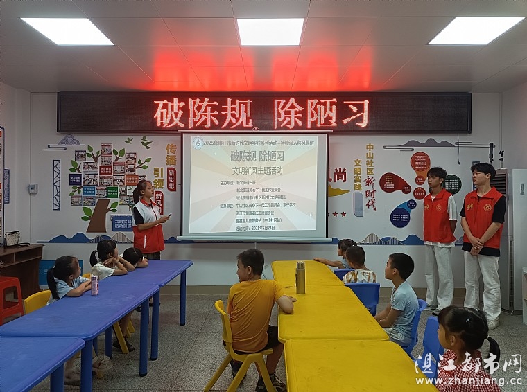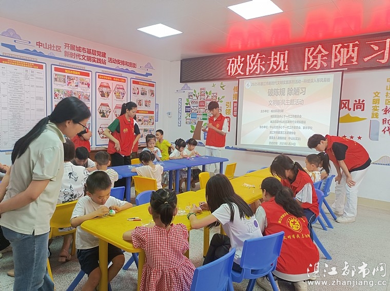 为了向儿童普及陈规陋习的危害,增强其对文明新风的认知和理解,培养健康、文明的生活理念,2025年5月24日上午由城北街道关心下一代工作委员会,城北街道中山社区新时代文明实践站,中山社区关心下一代工作委员会,廉江市中山社区家长学校,湛江市情暖湛江志愿者协会,壹基金儿童服务站(廉江市中山社区站)开展“破陈规 除陋习”文明新风主题活动。本次活动旨在将传统中医文化的种子播撒在孩子们心间,同时为他们的健康成长保驾护航。孩子、家长和志愿者共45人参与本次活动。