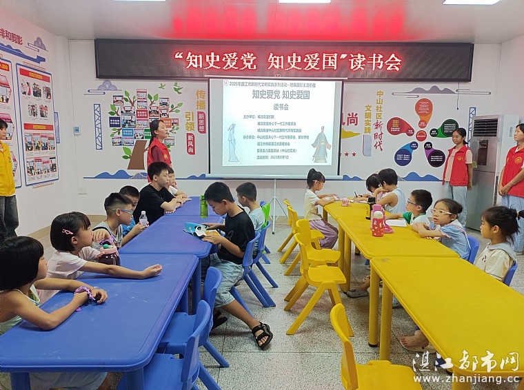 为引导儿童了解党史国史,厚植爱党爱国情怀,2025年8月1日上午由廉江市共青团,城北街道关心下一代工作委员会,城北街道中山社区新时代文明实践站,中山社区关心下一代工作委员会,廉江市中山社区家长学校,湛江市情暖湛江志愿者协会,壹基金儿童服务站(廉江市中山社区站)开展“知史爱党 知史爱国"读书会,志愿者与孩子们共同在历史故事中感悟初心,在互动实践中传承红色基因。本次活动共吸引了孩子、家长和大学生志愿者共55人参与。