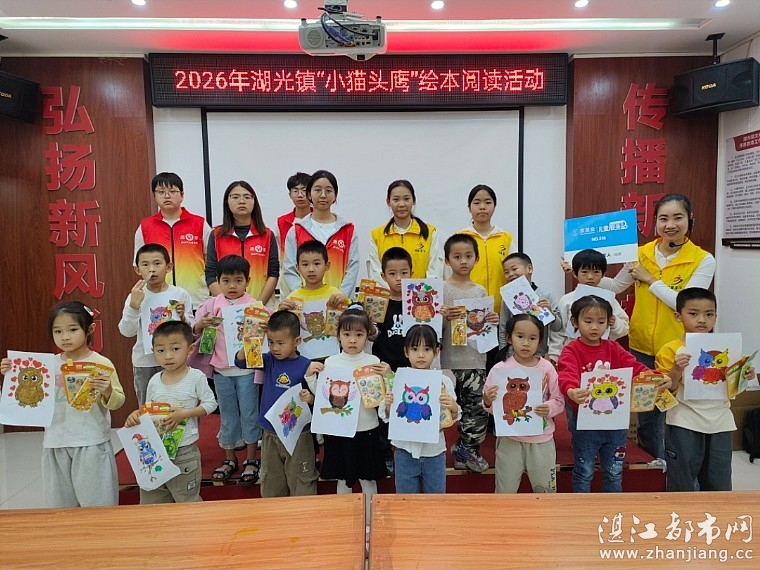 为了激发幼儿阅读兴趣,培养想象力与动手能力。2026年1月17日上午由共青团湛江市委员会、麻章区志愿服务总队、湖光镇团委、湖光镇创文办、湖光镇新时代文明实践所、湖光镇妇联、湖光镇综合文化站、湛江市情暖湛江志愿者协会、N516壹基金儿童服务站(湖光镇文化站)开展2026年湖光镇“小猫头鹰”绘本阅读活动。有志愿者、儿童共25人参加了此次活动。