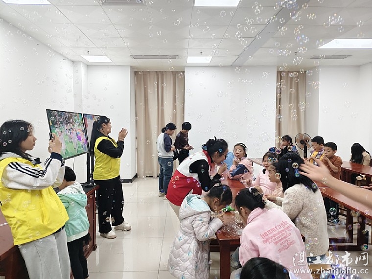 最受期待的泡泡舞池环节,漫天泡泡如云朵飘落,现场化作梦幻王国。孩子们肆意奔跑、跳跃、嬉戏,晶莹泡泡与欢声笑语交织,治愈感拉满。活动尾声,志愿者总结减压技巧,鼓励大家学以致用并为每位参与者送上“解压神器”,全体人员合影留念,定格轻松笑脸,为活动画上圆满句号。