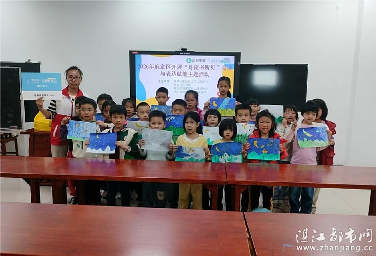 为传承中华优秀传统文化,丰富儿童精神文化生活。让孩子们在趣味阅读中感受文字魅力,在表达实践中收获成长力量。活动主题以诗词为载体,引导孩子们感受古典诗词的韵律之美,提升阅读理解、语言表达与艺术创作能力,在诗意中发现自然之美、培养审美情趣。2026年2月10日,麻章区新时代文明实践中心、麻章区图书馆、湛江市情暖湛江志愿者协会和N1493壹基金儿童服务站开展联合“舟夜书所见”阅读与表达赋能主题活动。本次活动受益志愿者、家长、儿童共43人。