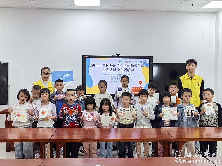 为引导孩子们感受母爱、理解母爱、表达感恩,提升阅读理解能力与情感表达水平,让孩子们在故事与互动中体会亲情温暖,学会珍惜与感恩,促进身心健康成长。2026年2月12日,麻章区新时代文明实践中心、麻章区图书馆、湛江市情暖湛江志愿者协会和N1493壹基金儿童服务站开展联合“伟大的母爱”阅读与表达赋能主题活动。本次活动受益志愿者、家长、儿童共42人。