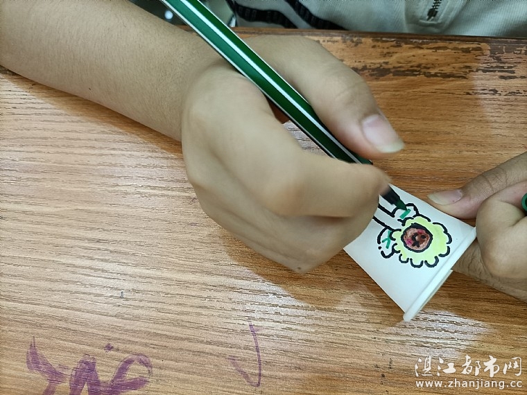 活动的高潮是“希望盆栽”的制作环节,这也是孩子们最期待的动手时刻。在志愿者的指导下,孩子们化身“小小园丁”。他们首先拿起画笔,在白色的纸杯上尽情挥洒创意。有的孩子画上了灿烂的向日葵,寓意着向阳而生;有的画上了可爱的笑脸,寄托着对快乐的向往。每一个纸杯都成为了独一无二的艺术品,承载着孩子们对未来的美好期许。绘画完成后,孩子们小心翼翼地将营养土倒入杯中,再用手指轻轻按压,将小小的种子埋入土壤深处。