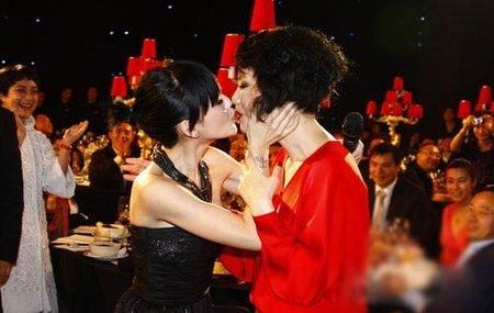 <br> <br> 2009嫣然天使基金慈善晚宴,王菲、李亚鹏被起哄亲吻,亲完后王菲还赶忙擦嘴,黑人陈建州在一旁笑他们“酸酸甜甜就像初恋”,当晚除了王菲李亚鹏激情一吻引人关注外,就是小S向王菲大胆索吻,感染所有人,上演了激情“断背吻”。<br> <br>