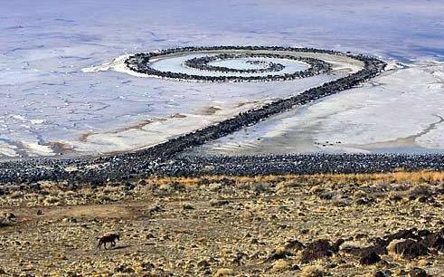 大地艺术螺旋形防波堤,位于布里格姆(Brigham)以西30英里处,在大盐湖的北部。这个特殊的雕塑由艺术家罗伯特·史密森于1970年用玄武岩和泥土创造而成。螺旋长1500英尺(450米),一直延伸到湖深处。之后,由于湖面上升,这个螺旋形防波堤沉于水下,1999年又重出湖面。<br>