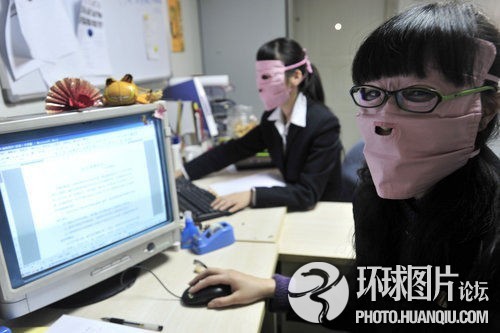武汉白领上班扮“蒙面大侠” 自称可防辐射