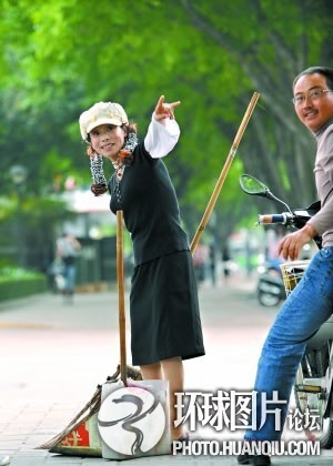 最时尚女清洁工戴假发穿长靴上班引网友热议