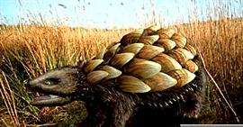 <br> 背上的皮毛相当厚实坚固,足以抵抗火焰烧烤和严寒冰冻。说明:咔哒背甲兽的祖先是南美的一种啮齿动物,单独居住于洞穴之中。它以植物根茎为食,背上的鳞状覆盖物如同装甲一般,可以通过共振来抵挡掠食动物的袭击,而且还是极其完美的绝缘体。其头部的毛发在暴风中起到保护面部的作用。“鳞片”事实上是坚硬的毛块,“鳞片”之间的空气起到保持体温的绝缘作用。“鳞片”之下是一层厚皮,周边还有一圈防御用的尖锐刚毛。<br> <br> <br>