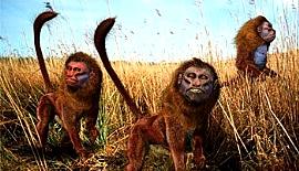 <br> 地球上仅存的灵长类动物,其长长的尾巴是识别同类的标记。说明:据科学研究,卡里夫狒狒的祖先是南美适应力最强的灵长类动物“ooakari”,它们成群结队,食物多种多样,可以在树林中和地面上生活。有着红色、类人面孔的卡里夫狒狒是地球上最后的灵长类动物。自从森林消失以后,它们就不得不生活在草原上。坚硬、红末梢的尾巴已不再是它们穿梭于树林中的平衡物,而只是起到一种标记的作用,一种在茂密草原上辨认同类动物的标记作用。<br> <br> <br>