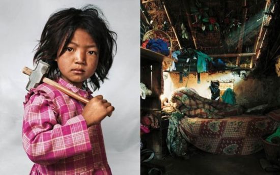 英国摄影师James Mollison 1973年出生于肯尼亚。当他被要求拍摄一组有关于儿童权利的摄影图片时,他发现自己回想起他的童年时有深厚感情的场所“卧室”,并在他的成长中发挥的重要性。于是,他拍摄了不同国家儿童的不同截面和卧室,并把这组极富有意涵的摄影作品取名为“Where Children Sleep”,他通过各国儿童们睡觉居住的坏境来让大家知道,世界上还存在着许多信息、文化、教育不平等。 Indira,7岁,与她的父母居住在尼泊尔首都加德满都附近。家里只有一个屋子,一张床和一个床垫。Indira每天都需要工作六个小时以帮持家用,但她也去上学,路程是30分钟。她最喜欢吃面条,她说等她长大了想成为一名舞蹈演员。