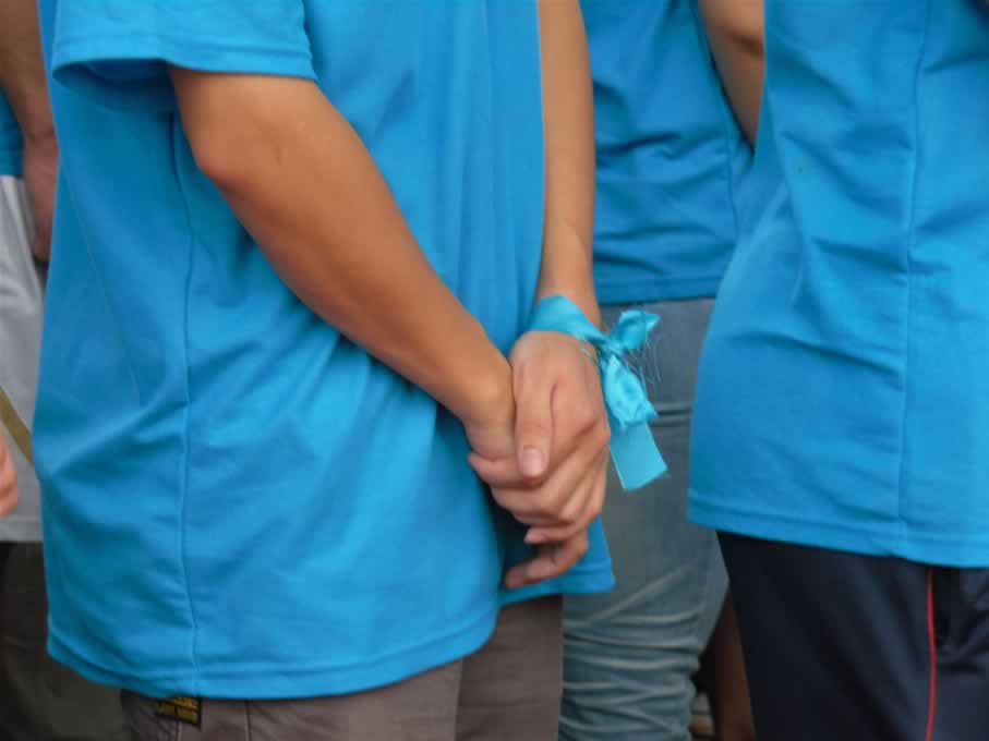 志愿者手上绑的蓝丝带,各种绑法的都有哦,这位帅哥绑的是蝴蝶结,有木有?