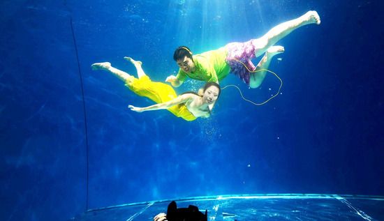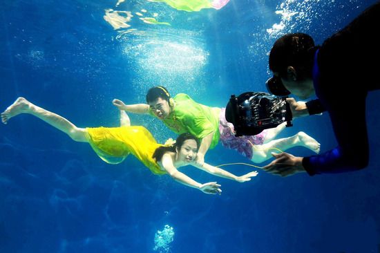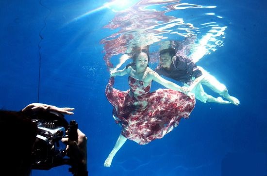 时尚个性新人 热衷水下婚纱照