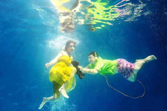 近日,不少追求个性、勇于“尝鲜”的新人们来到北京首家水下摄影馆拍摄水下婚纱照。虽然拍摄过程略感辛苦,但却为新人们留下了难忘的拍摄体验和甜蜜的爱情记忆。