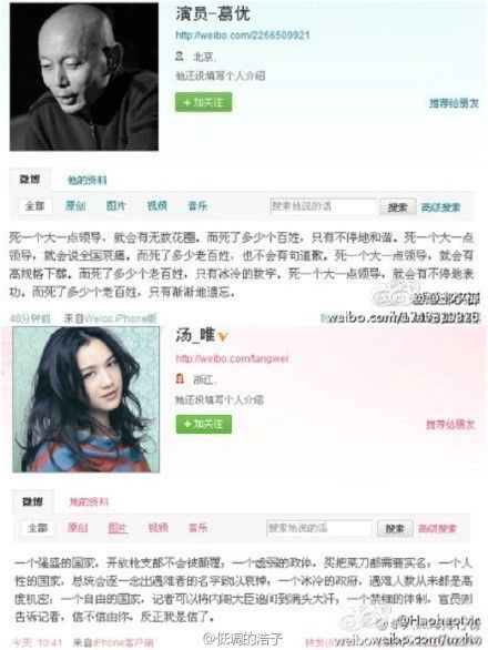 中国人值得反思东西:封杀了葛优的微薄,汤唯的微薄,她的微薄为什么还留着?