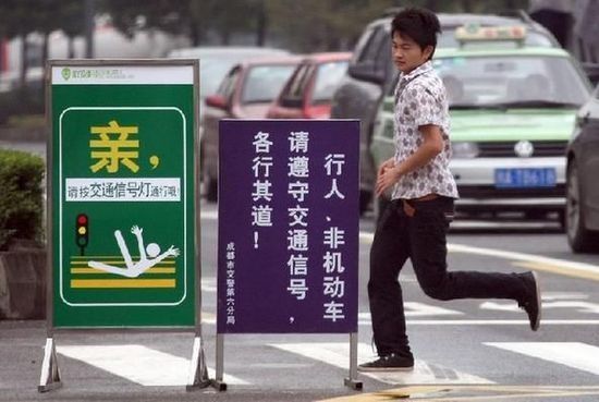 “亲,注意避让行人哦!”、“亲,请按交通信号灯通行哦!” 成都交警昨天做了一件创先河的事情:用“淘宝体”进行交通劝导,并将提示牌大面积摆上街。再过两天全市106个路口,到处都是“亲”!