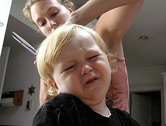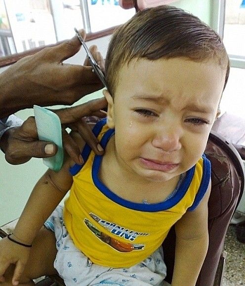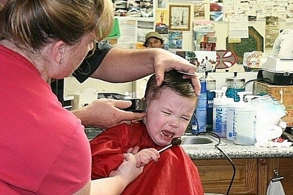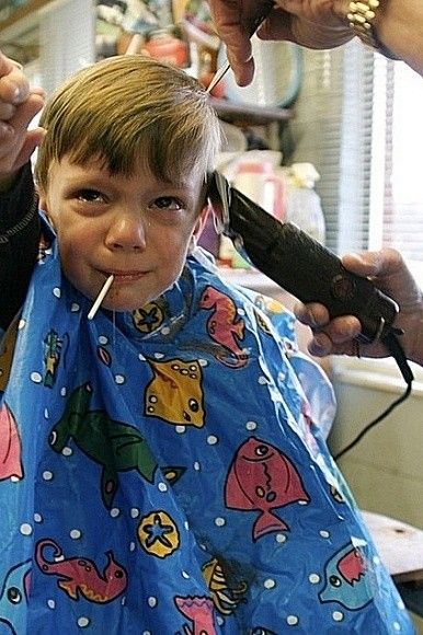 小孩子很怕剪头发啊,还有打针