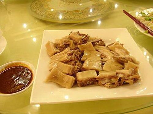 广东不少地方有吃白切鸡的习惯,但湛江人尤其喜爱白切鸡。湛江人做白切鸡一重选鸡,二重煮鸡,三重配味。所选鸡均为本地细骨农家鸡,煮鸡要求慢火煮浸,熟至八九成即可;配料用沙姜、蒜茸。因此本地的白切鸡特别肉嫩骨香,十分可口。
