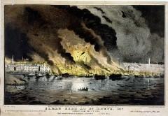 <br> 发生于公元1849年5月17日,持续11个小时。圣路易斯位于密西西比河与密苏里河的交界处。圣路易斯大火的起因是一艘蒸汽船“白云号”失火,并引燃了停泊在码头的其他蒸汽船。当时的圣路易斯并无专业消防队,所有的消防员都是志愿者,救灾效率低下。火势从船上蔓延到码头,相继引燃了大量建筑物,最终烧掉了430栋建筑、23艘大型汽船和不计其数的小型船只、皮划艇,烧死3人。一位叫做Thomas B. Targee的消防员在这次火灾中因公殉职。这是美国历史上有史可查的第一位因公殉职的消防员。<br> <br> <br>