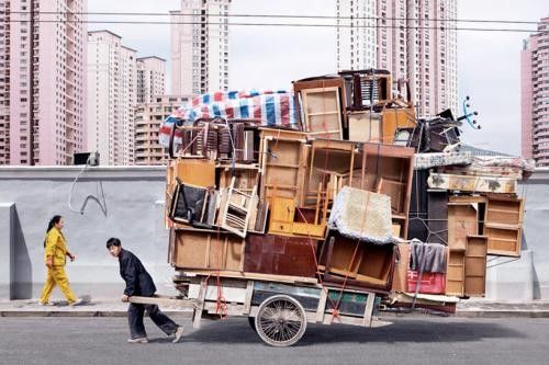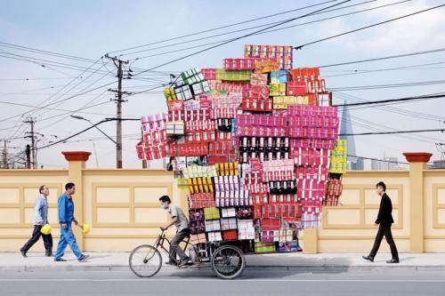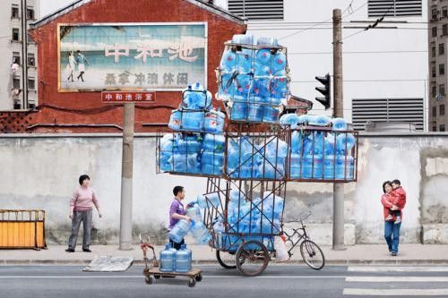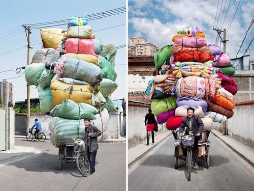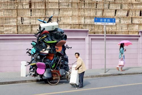 骑三轮车的都是民间的高手,这样的叠罗汉技能大家或多或少都见识过,不过在老外看来这真是一个奇迹,法国摄影师Alain Delorme在上海游玩时就被这一幕幕情境深深震撼了,利用PS再将其夸张放大,喜感的背后是一阵阵的酸楚~~