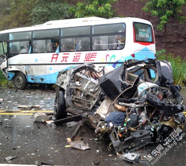 据了解,事发地为遂宁市蓬溪县国道318线2217KM+800M处。22日中午12时左右,一辆开往遂宁方向的中巴车与开往蓬溪县的黑色小轿车相撞,中巴车将小轿车车身撞散架,车中四人被卡,中巴车上坐满乘客。