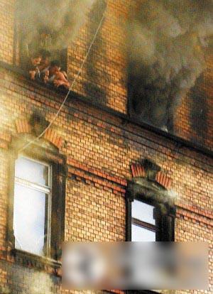 <br> <br> 德国西南部城市路德维希港的一幢公寓楼于2008年2月3日下午突然发生火灾,大火烧断楼梯,导致众多居民被困楼上。一对住在4楼的夫妇眼见他们的住宅就要被火海吞没,为了挽救时年年仅两岁的儿子的性命,竟然“火海赌命”,将婴儿扔下了浓烟弥漫的4楼窗户,盼望底下有人能够接住。幸运的是,这名婴儿正好被一名眼疾手快的警察伸手接住,奇迹般逃过一劫。<br> <br>