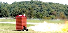 <br> <br> 核心提示:如果你是在飞机上或者火车里,那么厕所随着一起或飞或走也十分正常。但如果是一个独立的厕所在地上飞奔,那么在里面上厕所的感受会不会很奇妙呢? <br> <br> 启动后在草地上飞奔的厕所,它身后喷着巨大的火焰<br> <br> 如果你是在飞机上或者火车里,那么厕所随着一起或飞或走也十分正常。但如果是一个独立的厕所在地上“飞奔”,那么在里面上厕所的感受会不会很奇妙呢? <br> <br> 据英国《每日电讯报》今晨报道,美国43岁的设计师保罗·施腾德设计了一个带有波音喷气式发动机的厕所,该厕所启动后时速可达70公里。 <br> <br> 据悉,保罗在厕所底部安装了一个波音喷气式发动机驱动。同时,从厕所排气管喷出巨大的火焰,让它看起来就像一个火箭。 <br> <br> 保罗笑称,在这个会跑的厕所里上厕所最好保证它在平坦的路面上行驶,否则后果将有点难堪。<br><br> <br><br><br>