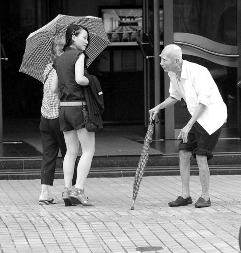 广州91岁老伯每天拄雨伞过马路 无路人敢扶