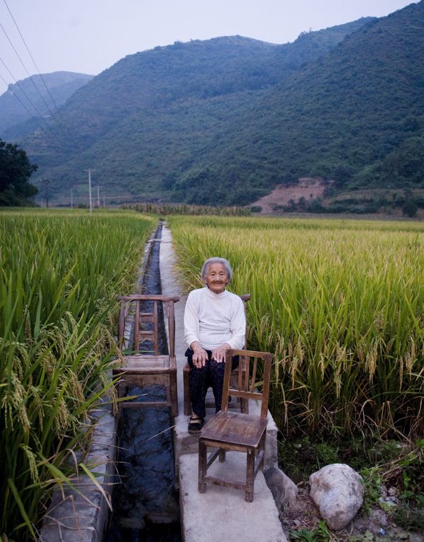 陕西省旬阳县白柳镇,87岁的柳树珍在村里的水稻田边(8月30日摄)。柳树珍的老伴去世,儿子在外打工。