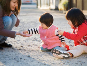 程淮建议,家长最好和孩子一起玩,不但能增进亲子关系,还可以帮助孩子提高兴趣。在这个过程中,家长要先看孩子玩,再作为玩伴、支持者和引导者参与进去。“有的孩子喜欢洋娃娃,家长可以拿着洋娃娃,讲一些关于动物的童话,这会增进孩子对玩具的感情。”一种玩具能玩出很多花样,如投掷,可以扔皮球、扔木头、扔小铁器等。不同物质、不同形状、不同重量的东西,扔出去后发出的声音和距离都不一样,会引起孩子思考,促进孩子思维的开发。