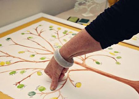 准备一张画,像图中一样的,一棵树!每到场的一位嘉宾就用印台把指纹留到树枝上,把树“活”起来!