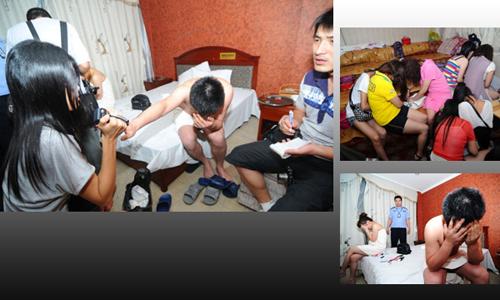 <br> <br>【最尊重失足女的扫黄现场】北京扫黄风暴过后,重庆也开始掀起扫黄打黑风暴。这是警方突击重庆希尔顿酒店场景。这副现场图失足女被戴上了头套,这样的扫黄场景在国内扫黄场景中非常少见。<br> <br>