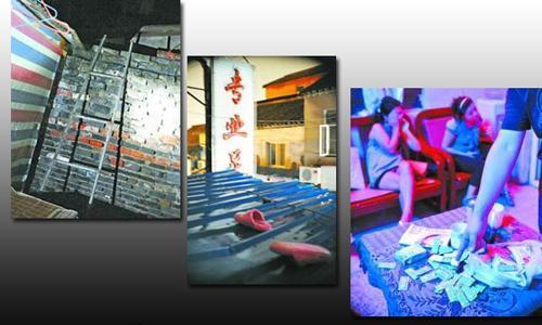 <br> <br>【最象悬疑片的扫黄现场】2010年8月30日晚,上海警方对涉黄、涉赌等地下休闲服务场所进行地毯式突击清查。嫖客逃跑后,拖鞋还留在顶棚上,现场还发现了翻墙逃跑的梯子。凌乱的床单上,散落有不少安全套……<br> <br>