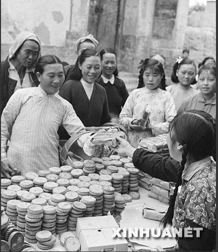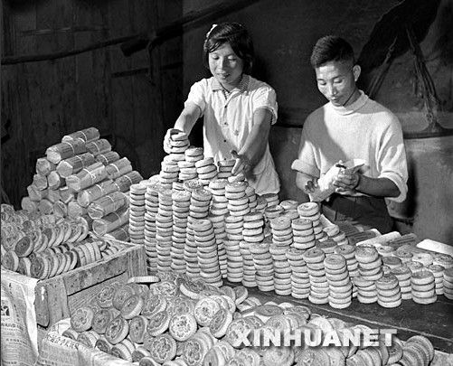 这是1961年9月21日,山西省闻喜县东镇供销合作社的工作人员在包装月饼,准备供应农民过中秋节