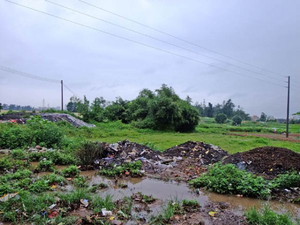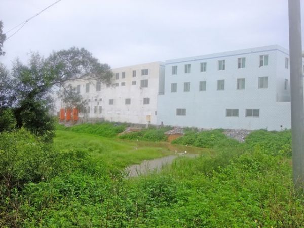 高墙矗立,墙内被圈之地已然是杂草丛生,墙外耕地则同样荒芜——这里是广东省吴川市大山江街道河东社区那孔村。
