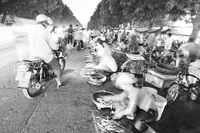 道路上停满了海鲜运输车辆,让群众烦不胜烦! 有哪个地方不是通过严格的管理来规范城市的秩序的,而我们湛江的环境秩序为何始终那么脏乱差?为什么要让有良知和责任感的群众每每投诉无门?为什么不想办法让群众体会到“网格管理”在这些地方的功效?为什么非要让群众的情感麻木到了无法形容? 在与群众接触听取他们意见的过程中,笔者也向水产品市场管理者咨询了市民关注的“这个市场何时搬迁”问题,对方的答复是:新的水产品市场正在全力建设之中,现已进入尾声,而大型冷库业已开始运作。预计霞山这个市场明年6月前后可以搬迁。