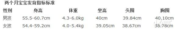 宝宝都二个月了,妈妈们是不是很想知道二个月大的宝宝应该长多高,体重是多少才算正常呢?只要你看完二个月宝宝发育指标就会一清二楚了。两个月的宝宝日常生活开始规律化,也形成了固定的吃奶时间。手指视觉听觉下肢小动作大动作认知语言独立性社交情感运动 手指能自己展开合拢,能在胸前玩,会吸吮拇指。 此时,孩子仍然不能看清楚30厘米以外的物体,但关注30厘米以内的物体。 他喜欢人类的声音,他最喜欢母亲的声音,在第2个月期间,你会听到孩子重复某些元音。