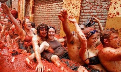 <br> <br> 时间:2009年8月26日<br> <br> 地点:西班牙,巴伦西亚<br> <br> 超过两万的游客涌入街头,互相扔番茄。在一个小时的期限内,平均每个人投掷的番茄达到250磅。该节日的起源说法不一,有一种解释是源自1945年的反法抗争。<br> <br>